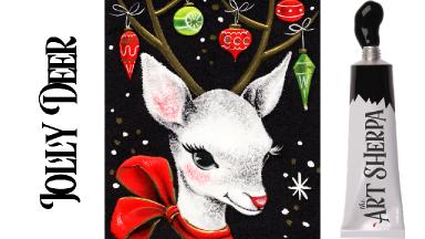 Easy Painting In Acrylic Vintage Christmas Card Deer Live Stream | The Art Sherpa